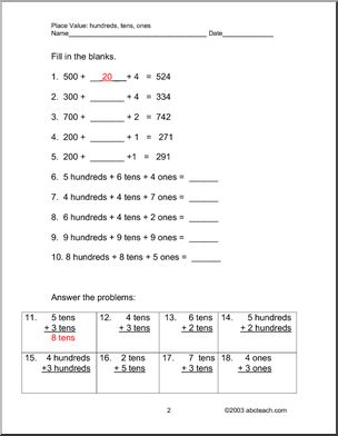 Place Value (ones, tens, hundreds) Set 2