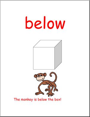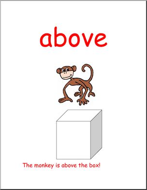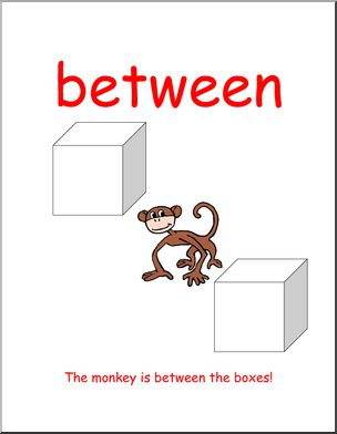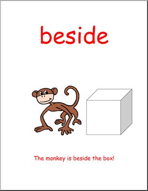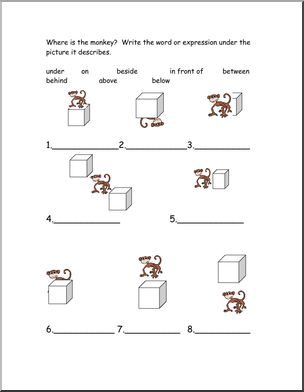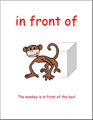 Where is the monkey in relation to the box? Prepositions of location.