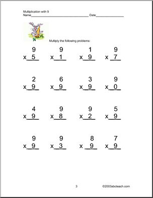 This Practice Facts Packet (by 9) Multiplication is perfect to practice multiplication skills. Your elementary grade students will love this Practice Facts Packet (by 9) Multiplication. Worksheets for practicing multiplication by 9. Five pages, with cute illustrations and answers.