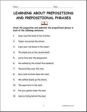 Use this ‘Rules and Practice: Prepositions and Prepositional Phrases’ printable worksheet in the classroom or at home. Your students will love this ‘Rules and Practice: Prepositions and Prepositional Phrases’. Introduces prepositions and prepositional phrases, with four pages of easy practice.