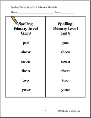 Use this ‘High Frequency Spelling: Primary, Unit 8’ printable worksheet in the classroom or at home. Your students will love this ‘High Frequency Spelling: Primary, Unit 8’. Review of high frequency primary level spelling units 5-7