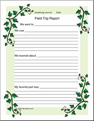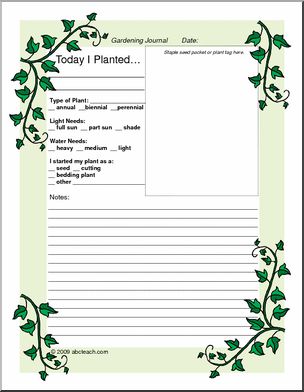 Ivy-bordered pages for: project cover, planting record, journal entry, field trip report.