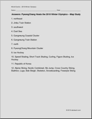 PyeongChang Hosts the 2018 Olympics – Map Skills (elem)