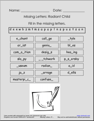 Use this ‘Vocabulary Puzzles: Radiant Child’ printable worksheet in the classroom or at home. Your students will love this ‘Vocabulary Puzzles: Radiant Child’. Enhances vocabulary for Javaka Steptoe’s 2017 Caldecott winner about a boy’s dream of becoming a famous artist. Includes ABC Sort, Missing Letter, Word Scramble, Crossword and Word Search.