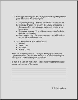 Reading Comprehension: 2014 Sochi Winter Olympics (upper elem/middle)