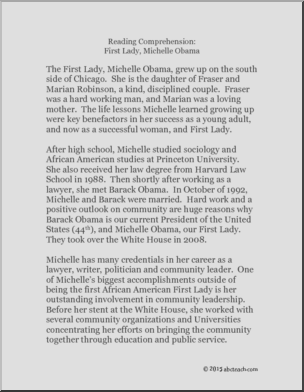 Reading Comprehension: Michelle Obama (upper elem)