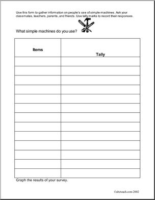 Report planner, KWL, and a lined page to write a report about simple machines. Includes a survey and graph to find out about people’s favorite machines.