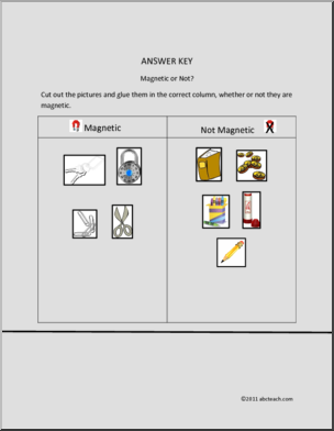 A worksheet in which students identify which items are and are not magnetic, and then cut and paste in the correct box.