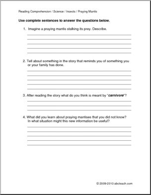 Science Praying Mantis (upper elem/middle) Comprehension