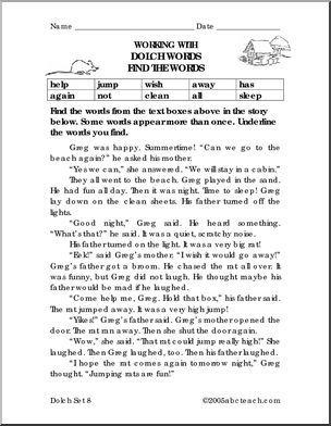 Use this ‘Dolch Reading: Set 8’ printable worksheet in the classroom or at home. Your students will love this ‘Dolch Reading: Set 8’. Ten Dolch words (again, not, clean, all, sleep, help, jump, wish, away, has). Practice spelling & context reading with a crossword puzzle, cloze sentences, a cloze story, and a “find the words” […]