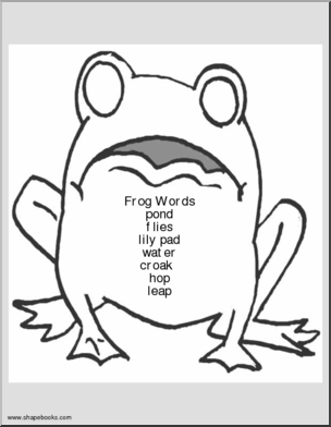Trace and cut out this frog pattern for a great shapebook. Includes writing prompts.
