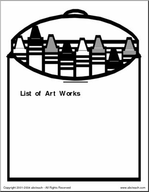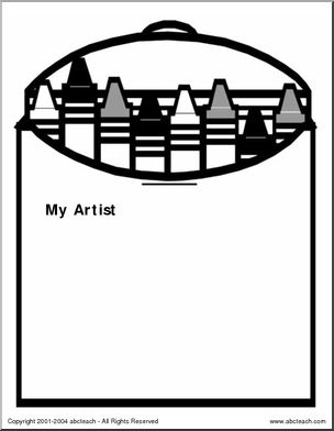 [member-created using abctools] Trace and cut out. This crayon-shaped shapebook has prompts for students to answer about a specific artist.