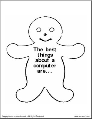 [member-created document] Trace and cut out. This Gingerbread Man-shaped shapebook has prompts for students to answer about a variety of seasonal and general topics. Nineteen pages.