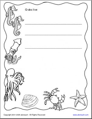 [member-created with abctools] Trace and cut out. This sea-themed shapebook includes writing prompts for students learning about crabs.