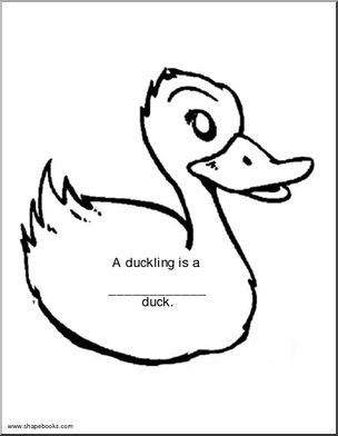 Trace and cut out. This eight-page, duckling-shaped shapebook has prompts for students to answer about ducks, and a list of words on the last page. (“A duck says… A duck lives in a …”)