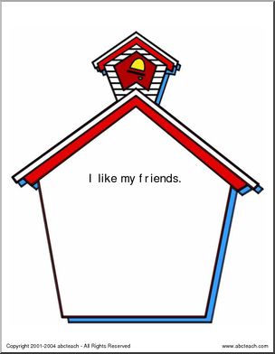 [member-created with abctools] Trace and cut out. This schoolhouse-shaped shapebook has simple sentences for students to read and space for them to write or draw pictures.