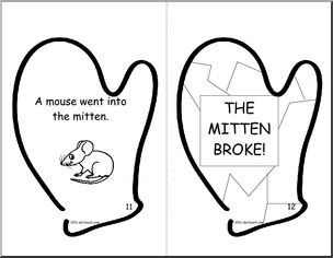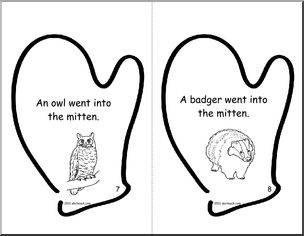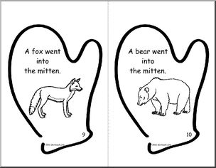 An early reader book shaped like a mitten and based on the folktale illustrated by Jan Brett, titled The Mitten. A two book pages per sheet of paper format that engages student in cutting and coloring.