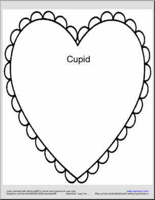 A 10-page heart-shaped shapebook with Valentines theme words, from VALENTINE to FRIENDS.
