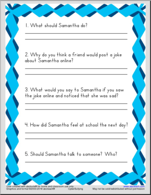 Read the story about Samantha and answer the questions that follow. This story is about online bullying and the effects they have on everyone. What would you do?