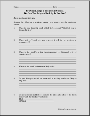 Content / Language Arts / Reading / Literature Activities / Middle/High School / First Sentences