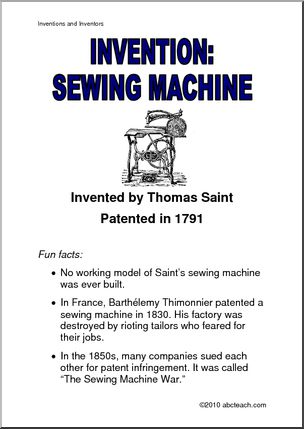Booklet form enables students to write a short report on the invention of the sewing machine.