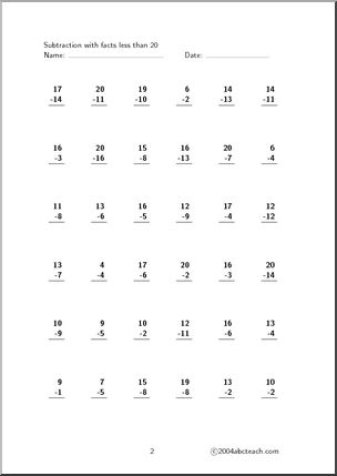 10 pages of practice for subtraction of positive and negative integers (5 pages of ones place, 5 pages of ones and tens places). Facts are in horizontal form. Created with our abctools Math Worksheet Generator. CC: 7.NS.A.1