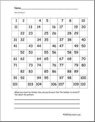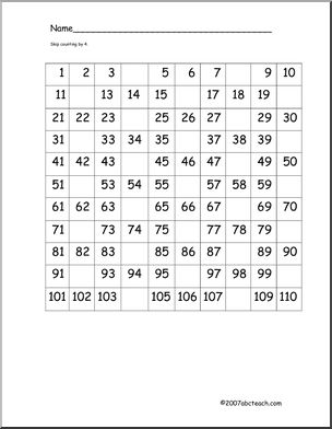 This Skip Counting to 110 (elem) Worksheets is perfect to practice math skills. Your elementary grade students will love this Skip Counting to 110 (elem) Worksheets. A chart filled to 110, some charts with random missing numbers and some charts with missing numbers to help practice skip counting (by 2s, 3s, 4s, 5s, and 10s).