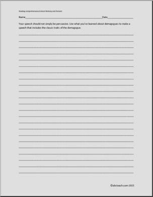 This reading comprehension takes an in-depth approach to defining the term “demagogue.” Includes historical examples, critical thinking exercises, and question and answer section. A great introduction to analyzing rhetoric.