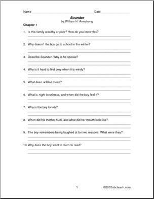 Use this ‘Book: Sounder (upper elem/middle)’ printable worksheet in the classroom or at home. Your students will love this ‘Book: Sounder (upper elem/middle)’. Review comprehension of William Armstrong’s 1970 Newbery winning story of a loyal coon dog and a boy’s transition to adulthood.