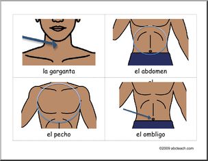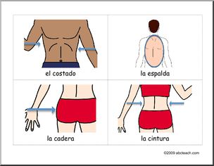 Spanish: 24 Tarjetas de vocabulario con las partes del cuerpo 2/2