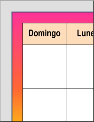 Large color calendar grid with days of the week in Spanish for a bulletin board size calendar. Use with other abcteach Spanish bulletin Board Size Calendar components. Prints on 12 pages.