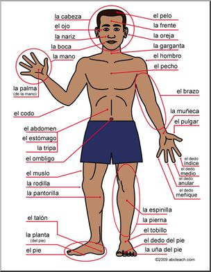 Spanish: Cartel pequeÃ’o con vocabulario de la parte delantera del cuerpo humano