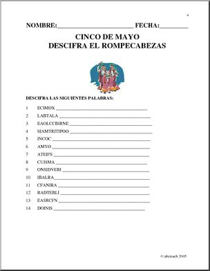 Cinco de Mayo activities in Spanish for upper elementary levels.