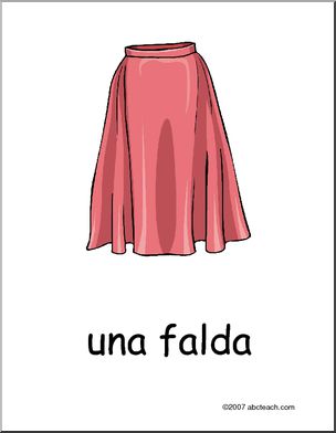 Clothing posters for “bota, sombrero, chaqueta, bufanda, guante y falda”.