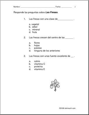ComprensiÛn de lectura con informaciÛn sobre las fresas. Reading comprehension with information about strawberries.