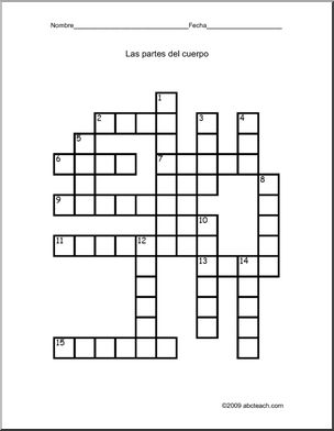 Spanish: Crucigrama de las partes del cuerpo