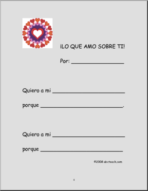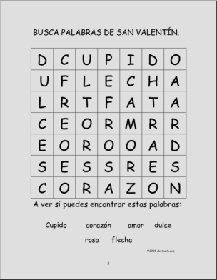 Una unidad suplemental con varias actividades para celebrar el dÃŒa de San ValentÃŒn, incluyendo un mini libro, un buscapalabras, unas rimas, una tarjeta de San ValentÃŒn, una comprensiÛn de lectura y matem·ticas.A suplemental unit to celebrate Valentines’s Day, including a mini-book, a word search, rhymes, a card a reading comprehension and math.