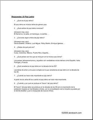 Spanish: El Pop Latino–ComprensiÛn de lectura
