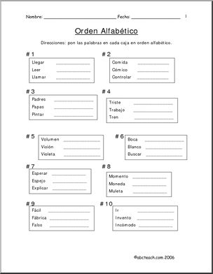 Spanish: OrtografÃŒa – Pr·ctica de orden alfabÈtico: la segunda letra 3 (elementaria y secundaria)