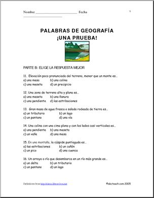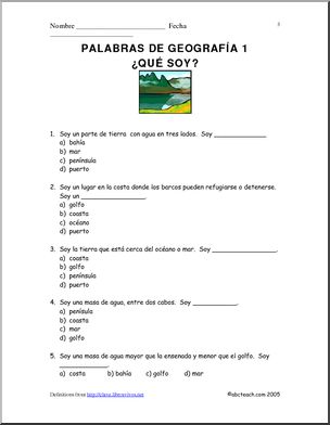 Actividades para practicar vocabulario util al estudiar geografia. Activities useful for the study of geography.