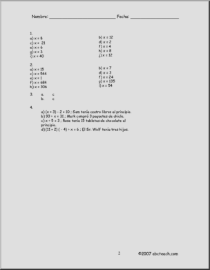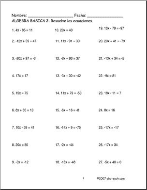 Spanish: Matem·ticas – Algebra B·sica: Ecuaciones y Problemas (Secundaria)