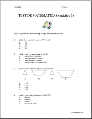 Spanish: Matem·ticas – Test de pr·ctica. Nivel 4 (elementaria/secundaria)