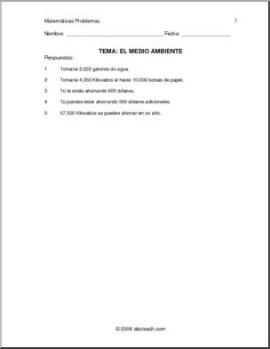 Pr·ctica de problemas de matem·ticas centrada en el tema del medio ambiente. Word problems centered around the environment.