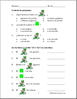 Practica lectura y vocabulario con este cuento con dibujos sobre un gnomo de San Patricio. Niveles elementarios. Practice reading and vocabulary with this rebus about a leprechaun. Elementary levels.