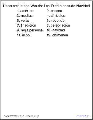 Spanish: Unscramble the Words – Los Tradiciones de Navidad