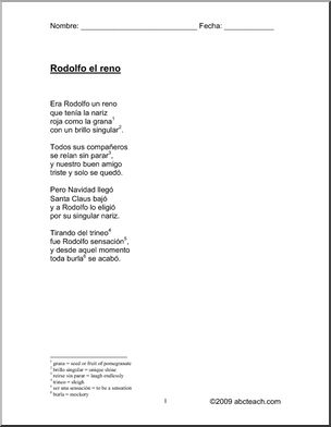 Utiliza la versiÛn espaÃ’ola del villancico “Rudolf the Red Nosed Reindeer” como ejercicio de comprensiÛn de lectura y dibujo. K-5 Use this Spanish version of Rudolph the Red-Nosed Reindeer as a comprehension exercise and drawing exercise. K-5