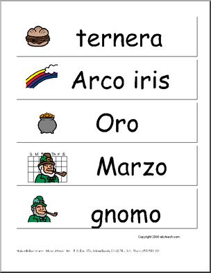 Carteles de vocabulario para la clase: el dÌa de San Patricio. Wall words with St. Patrick¥s Day vocabulary.