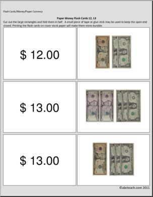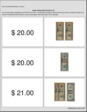 Special Needs: Math; Paper Money Flashcards ($11 – $21)