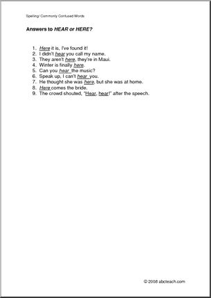 Practice and review spelling “here” and “hear”.