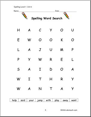 Use this ‘Spelling Level 1, unit 4 (primary)’ printable worksheet in the classroom or at home. Your students will love this ‘Spelling Level 1, unit 4 (primary)’. Worksheets to help learn these spelling words: help, said, your, jump, with, play, away, want. Cloze exercise, word search, missing letters and more!
